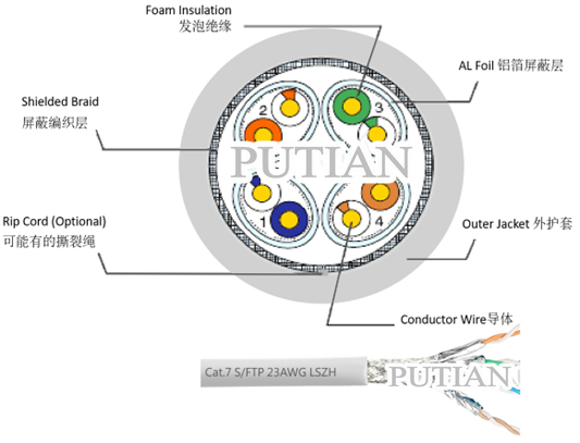■ 七类双屏蔽4对双绞线,LSZH/PVC,S/FTP双屏蔽线缆,23AWG线规■ 符合TIA/EIA 568D.2 和ISO/IEC11801:2011 Ed.2.2,,IEC61156-5,LSZH IEC60332、IEC 61034、IEC 60754, YD/T1019-2013及相关国内标准■ 带宽≥600MHz,可支持1000MHz■ 工作温度:-20至60度